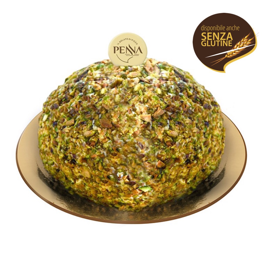 Gelato al pistacchio di Bronte 100% IGP, con cuore morbido di cioccolato fondente, ricoperto da una rottura di Pistacchi.